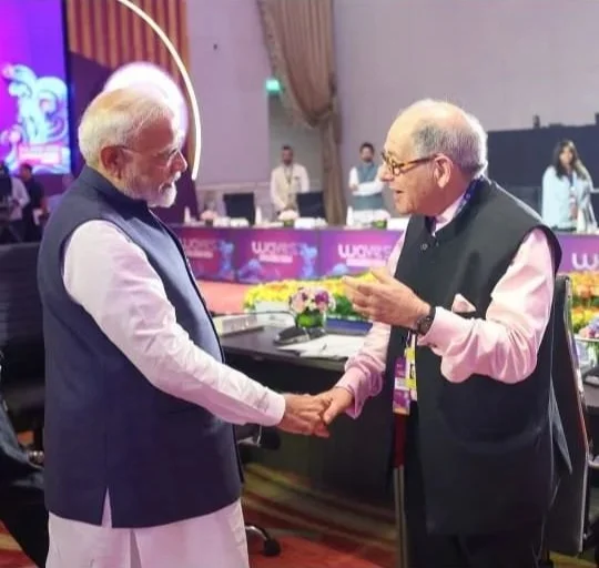 The Honourable Shri Narendra Modi, Prime Minister of India, meeting Ralph Simon, Mobilium Global Founder, at WAVES - the Worldwide Audio Visual Entertainment Summit - the high-level India gathering, organised by the Indian Prime Minister & his senior Cabinet Ministers, underlining the significance of “Creativity” and launching a major focus for India and the Creative Industries - for India and India’s significant influence in the Global South and globally.